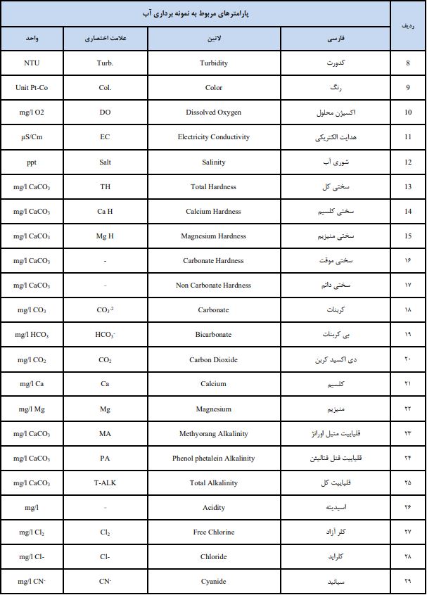 شرکت تلاشگران سبزاندیش محیط در حال حاضر توانایی اندازه گیری پارامترهای بسیاری نظیر موارد زیر را در بخش آب و پساب را دارا میباشد.