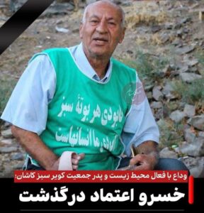 خسرو اعتماد مدیرعامل تشکل زیست محیطی جمعیت کویر سبز کاشان درگذشت.شرکت تلاشگران سبزاندیش محیط این مصیبت وارده را به خانواده محترم اعتماد و فعالان و دوستداران محیط زیست تسلیت عرض می نماید.شرکت تلاشگران سبز اندیش محیط ازمایشگاه معتمد سازمان حفاظت محیط زیست کانال ایتا شرکت تلاشگران https://eitaa.com/talashgaran_sabz_andish